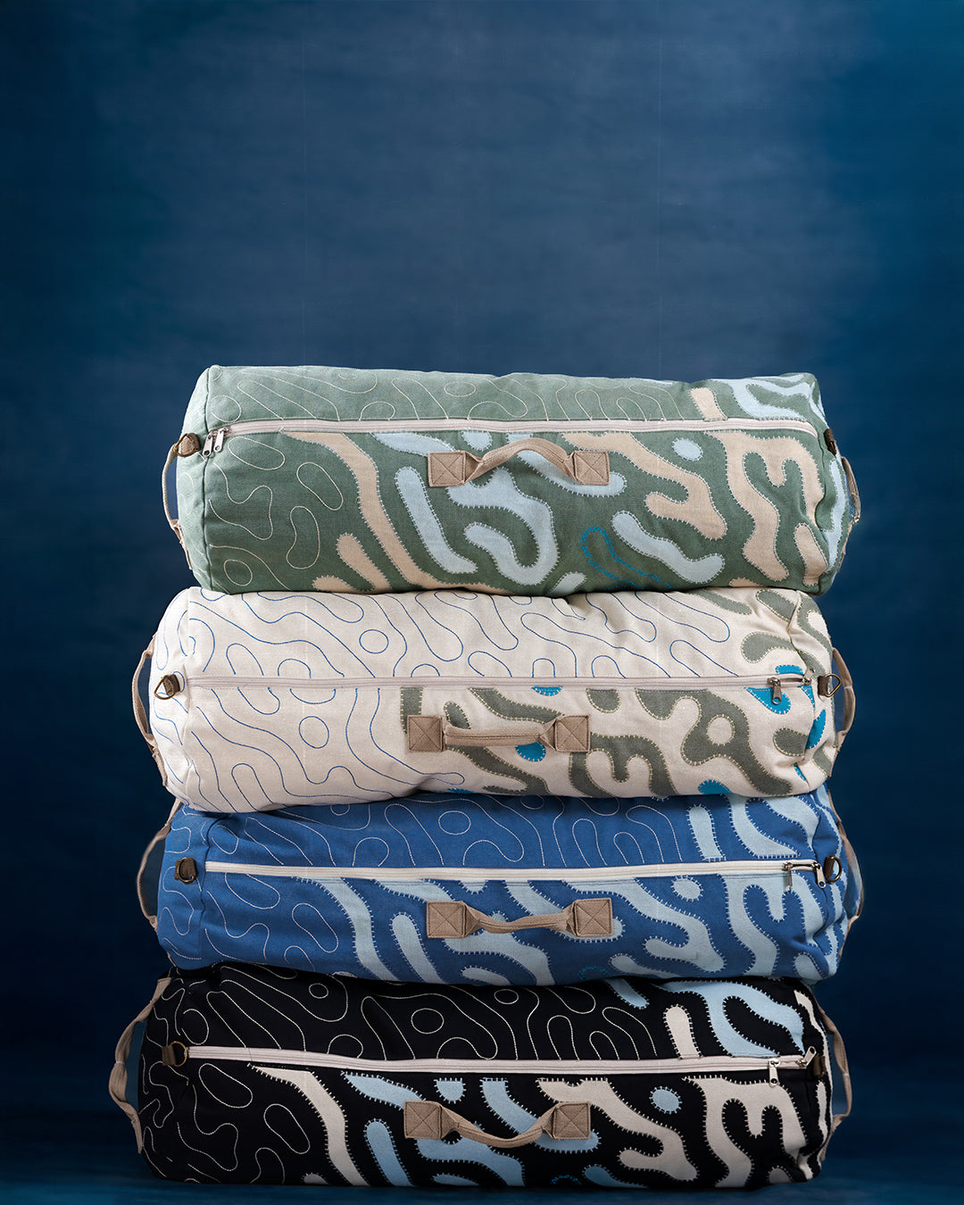 Each duffle is handmade with premium canvas and built using patchwork and embroidered craftsmanship that speaks to care, intention, and artistry.